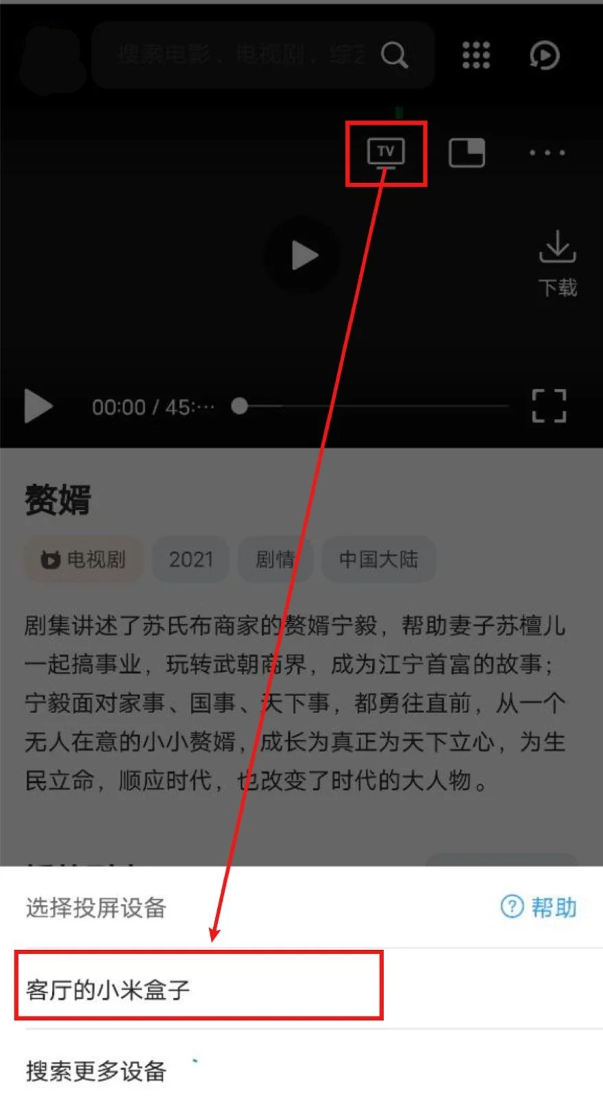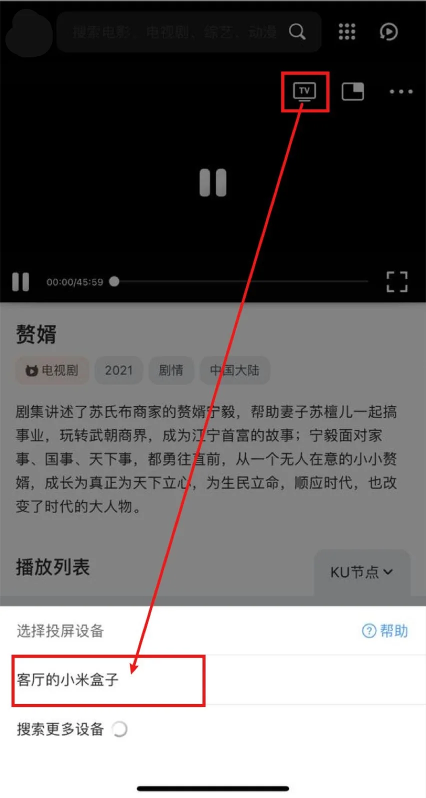 打开QQ浏览器(会接管网页播放器)->打开香港28短剧->播放视频->选中投屏图标->等待搜寻出智能电视/电视盒子->选中,即可投屏。